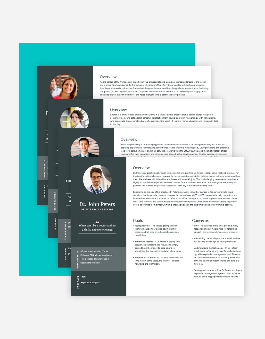 I wanted to make sure my newly expanded team, the two sides of the company, and myself, understood who we were designing for. I pulled together our existing enterprise personas and got interviewing customers of doctor.com.